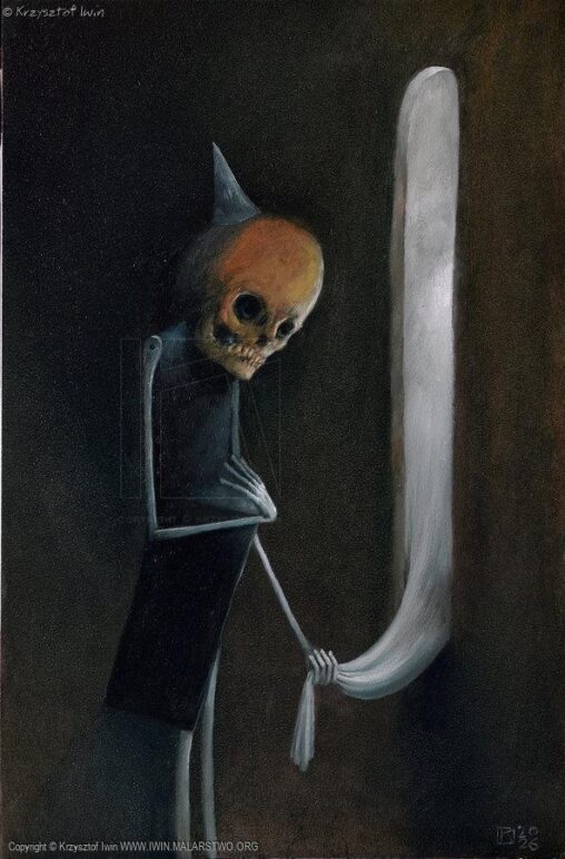 Krzysztof Iwin – „Odpoczynek kloszarda” akryl, płótno 27x33cm (2008) https://iwin.malarstwo.org/pl/odpoczynek_kloszarda-841.html #27cm #33cm #2008r #brązy #czernie #czerwienie #szarości #zielenie #art #painting #Iwin #KrzysztofIwin #obrazy #galeria #malarstwo #akrylenaplotnie #obrazyakrylowe